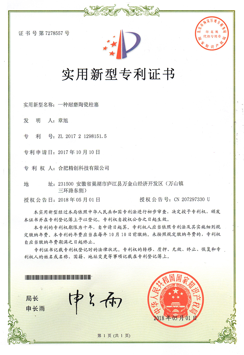 (2018實用新型)一種輕質陶瓷柱塞